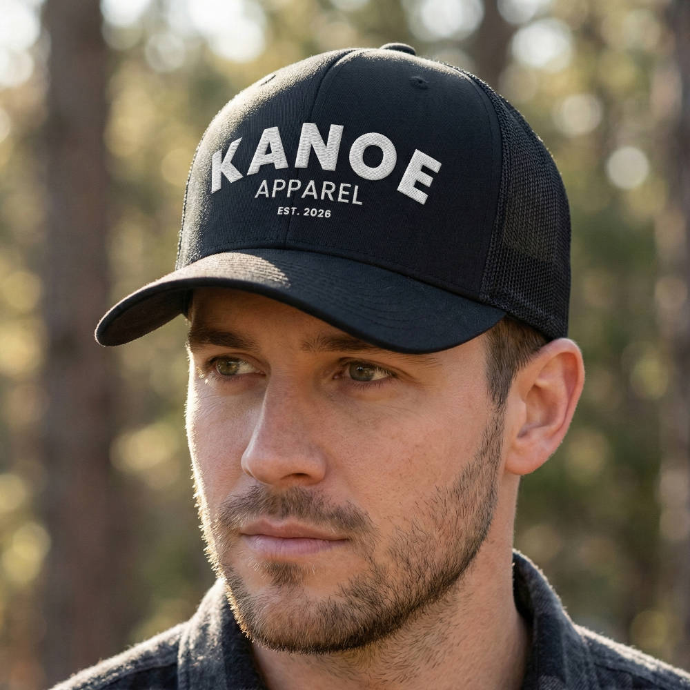 We built this on a classic mid-profile frame that fits just right—not too tall, not too shallow. The hard buckram front keeps the logo sharp, while the breathable mesh back keeps you cool when you’re paddling hard or setting up camp. It features the signature KANOE wordmark in bold contrast, signaling that you’ve clocked out and you're headed for the water.
